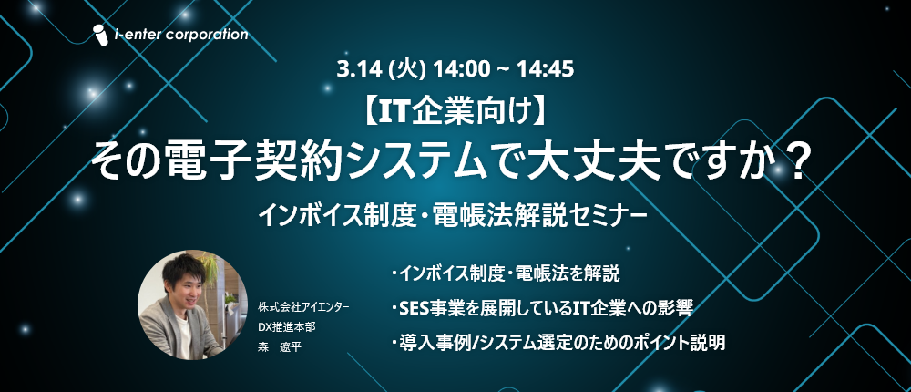2023年3月14日開催【IT企業向け】その電子契約システムで大丈夫ですか?インボイス制度・電帳法解説セミナー