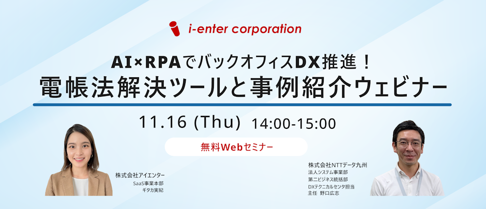 2023年11月16日開催 AI×RPAでバックオフィスDX推進!電帳法解決ツールと事例紹介ウェビナー